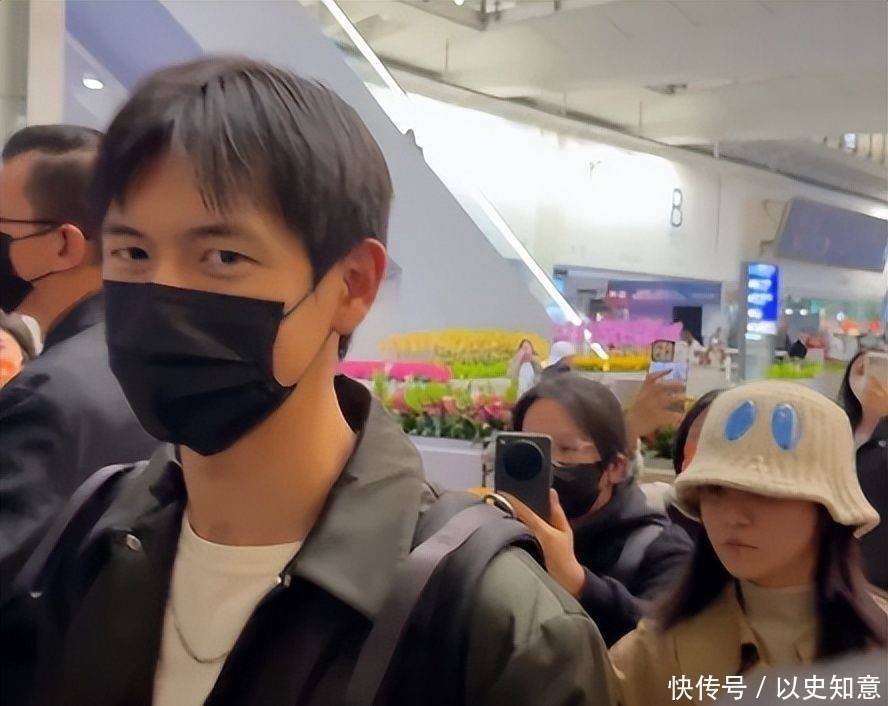 他佩戴纯黑口罩遮住口鼻,一头顺直短发整齐伏贴于额际,被网友亲切称为“顺产头”,意外透出几分少年般的乖巧与自在,毫无一线明星的距离感与架子感。