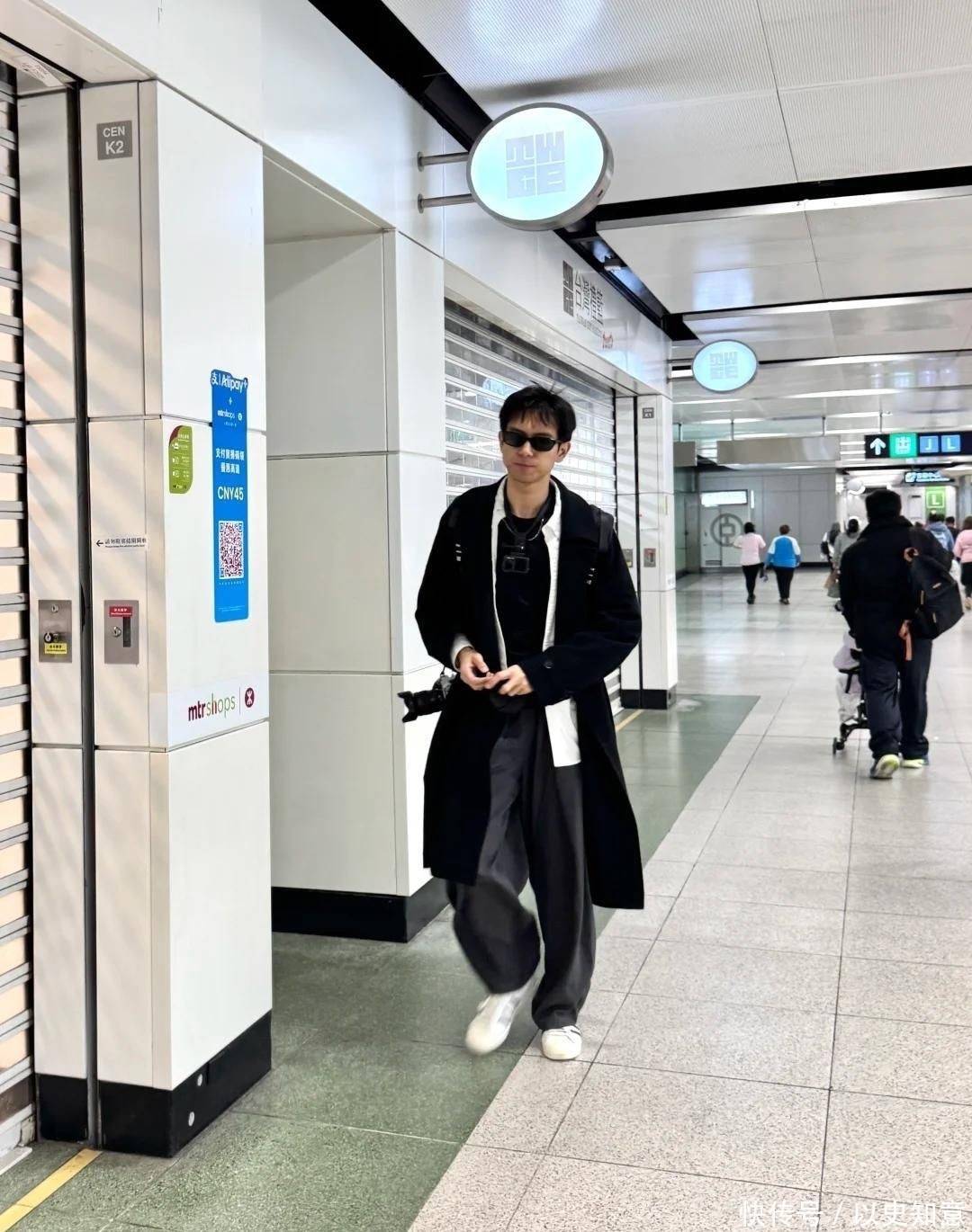 偶尔回眸扫视航站楼指示牌的动作舒展从容,举手投足间松弛感满溢,帅气气息扑面而来。谁也没料到,短短数小时后,他在中环街区将切换为另一种极具张力的酷飒形象。