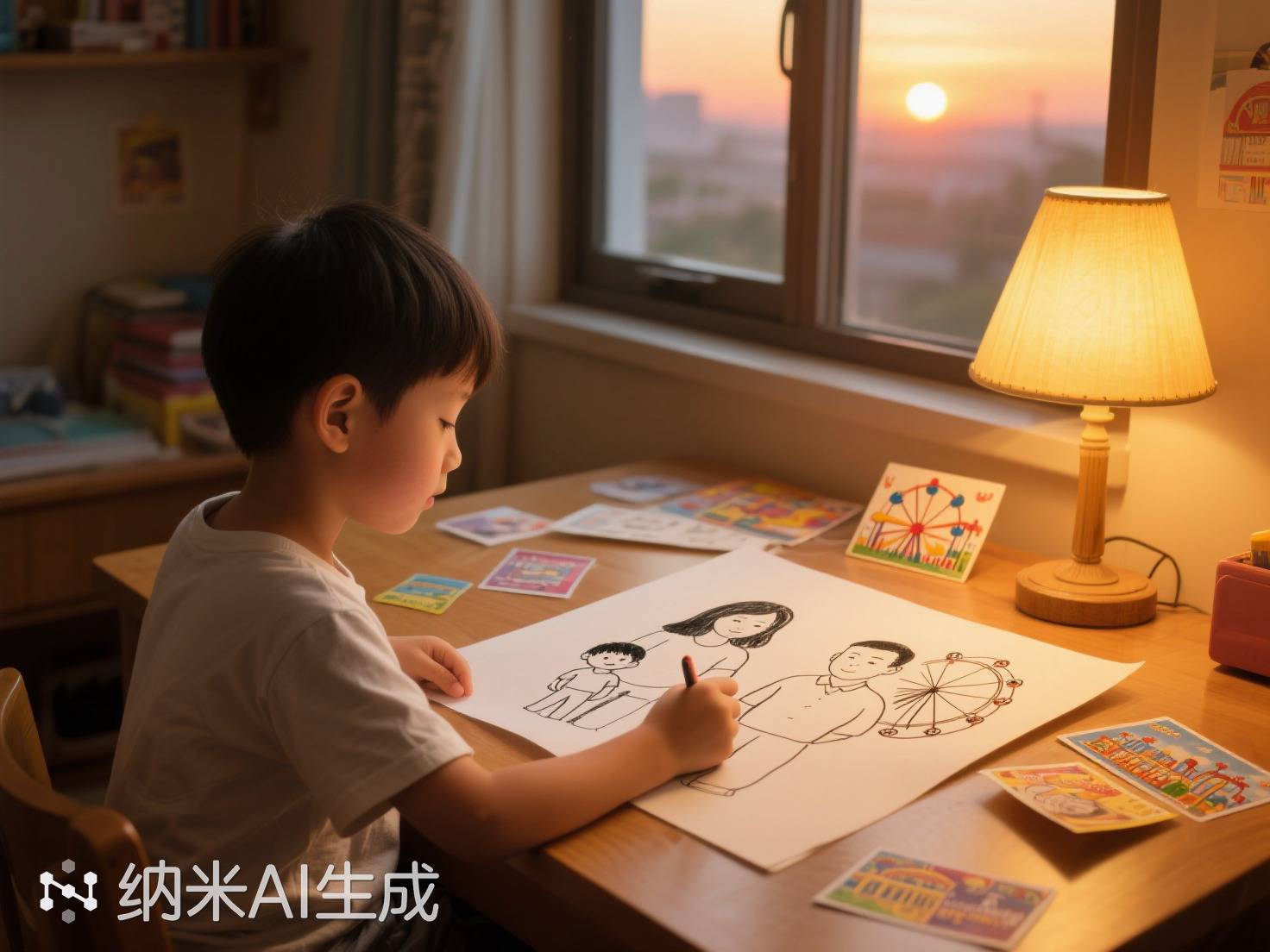 周六清晨的阳光刚爬上窗台,6岁的小宇就把游乐园门票塞进爸爸公文包。那是上周爸爸蹲在地上给他系鞋带时答应的,说要坐三次旋转木马,还要在摩天轮最高点许愿。可现在公文包还躺在玄关柜上,旁边散落着小宇画了一半的摩天轮——红色座舱里,爸爸的位置用铅笔涂成了灰色。 妈妈把煎糊的鸡蛋倒进垃圾桶时,小宇正趴在客厅地板上画全家福。蜡笔在纸上划出沙沙声,妈妈的马尾辫涂成棕色,自己的奥特曼T恤是亮蓝色,可画到右边那个穿西装的身影时,蜡笔突然停住了。昨天傍晚爸爸来电话,背景音里有键盘敲击声,他说项目出了点问题,下周一定补上。小宇当时没哭,只是把手机还给妈妈时,攥皱了那张印着米老鼠头像的门票。 墙上的时钟指向下午三点,小宇把画好的全家福贴在冰箱上。妈妈擦护手霜的动作顿了顿——画里的三个人变成了两个,右边空出来的位置用银色蜡笔涂满星星,像爸爸总说的“在加班的地方也能看到同一片星空”。这时门铃突然响了,小宇光着脚冲过去,却看见爸爸抱着一个巨大的维尼熊站在门口,公文包上还沾着没擦掉的粉笔灰。 “爸爸去了工地。”男人蹲下来时膝盖发出轻微的响声,工作服袖口还别着黄色安全帽,“王叔叔说塔吊上能看到游乐园,我就爬上去看了看,原来旋转木马转起来真的像彩虹。”他从口袋里掏出两张皱巴巴的门票,日期是下周日的。小宇突然发现爸爸眼角有亮晶晶的东西,就像自己画星星时不小心滴在纸上的蜡泪。 当晚风把窗帘吹得鼓起来时,小宇在新画的全家福上补了个穿工装裤的爸爸。这次他特意用金色蜡笔涂了爸爸的手指,因为刚才爸爸给他削铅笔时,左手食指缠着创可贴——那是昨天赶工安装游乐设施时被钉子划破的。妈妈举着手机拍照时,小宇突然把蜡笔塞给爸爸:“你也画一颗星星吧,要比我的亮。”本故事纯属虚构,如有雷同实属巧合